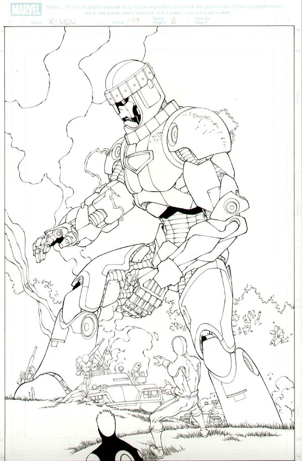 This giant Sentinel was waiting on my doorstep yesterday afternoon courtesy of Jim Warden and the United States Postal Service. It's page 8 from X-Men #179 by Salvador Larroca.