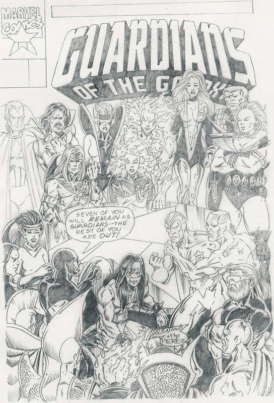 Time for me to add to one of these. I am just getting my feet wet in this wonderful world of commissions and original art. My next stop is John Byrne art (and a commission I hope one day). But I was able to get some great original pages from a favorite comic of mine. Jim Valentino's run on Guardians of the Galaxy. As a result of that Jim Valentino was kind enough to come up with a very cool cover reinterpretation for me.