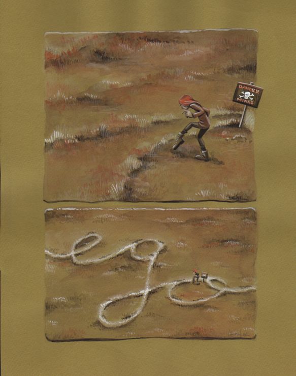 Laura Lee Gulledge attended 2011 Baltimore Comic with it being her first con as a professional. She was promoting her graphic novel, Page by Paige. I found her pieces to be thought-provoking and was able to pick up a few. Ego leaves one pondering the pitfalls of getting stuck in oneself. It will look great in my office at the practice.