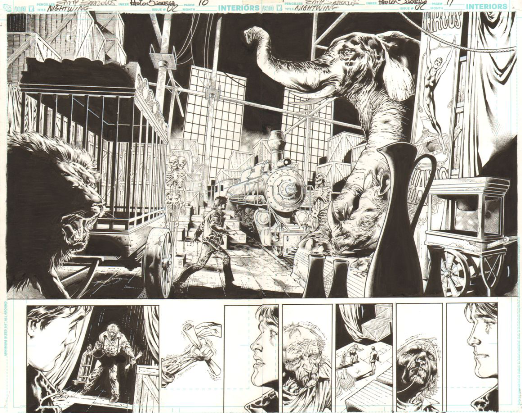 I saved the gem of the show for last... Eddy Barrows at his best, with his friend Paulo Siqueira doing some never before inked work over someone else...... the detail is amazing to me as is the emotional impact of Dick Grayson's return to the circus he was originally born and raised.