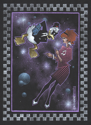 My first new art of 2012. I set this up with John K. Snyder III at Baltimore. I asked for Howard the Duck. John decided to add Bev (which I knew prior to seeing the art). Due to Facebook, John knows I'm a ska fan and added that as the theme (which was a surprise). I love this piece.