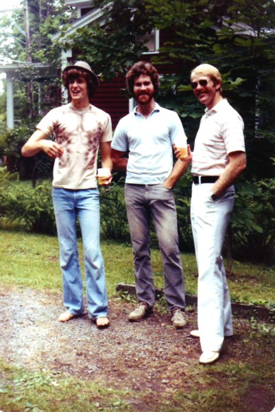 Here's another of me at my high school graduation party, June 1982. I'm all skinny on the left (but look at the shirt.... hmmm...), the guy in the middle is my band teacher/track coach -- two weeks after this shot was taken, he and I ran a marathon together -- and the guy on the right is the guy who ran with me daily.
