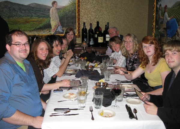 Here we are getting dinner after the show, the red haired girl beside me is Jon's girlfriend, she's a doll and we love her to pieces.