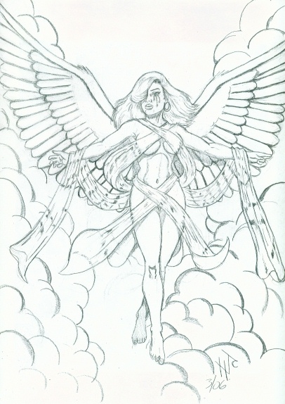 John, nice Dawn with wings! Very good. The wings are symmetrical, the pose is very nice- Any plans to ink and color this?