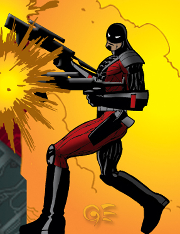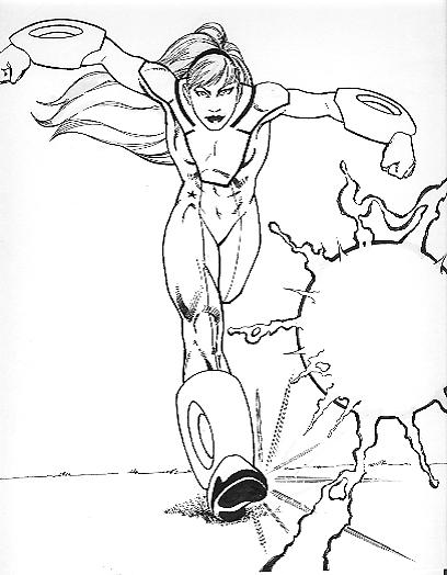Marcus- Nova!!! Nice shot of him blasting off. Good pose and spotting. Decent inks. My only view, (and please take this as constructive, ok?) is to find a way to make the lines more than just perspective lines. This piece reminds me of Simonson. If you ever look at the great Walt Simonson’s speed and burst lines, this guy is fantastic at it. He has streak lines of varying weight, accompanied by initial and current flares, and he adds some uneven flare streams. That's what I would do to enhance your piece. Hope it helps.