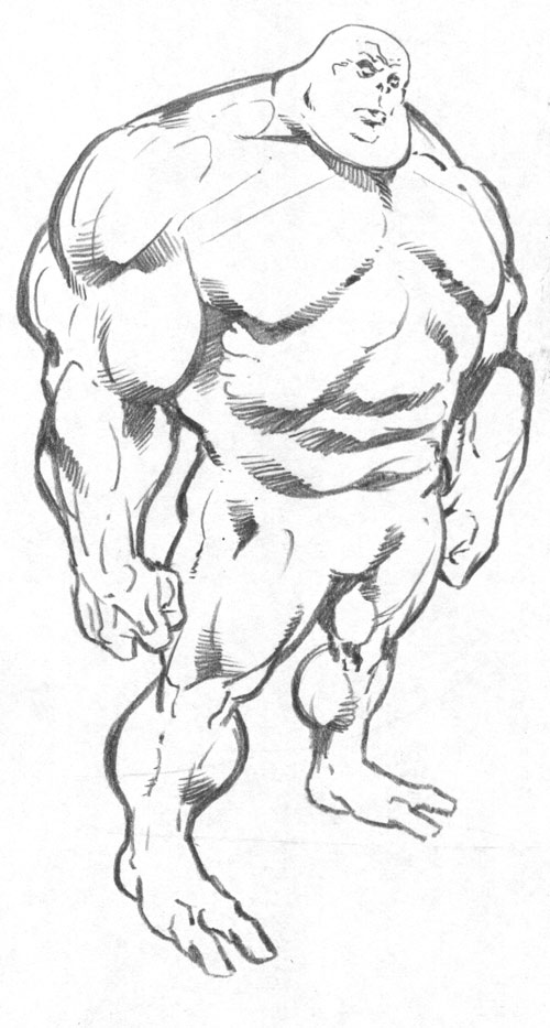 he a big un! some very nice line work done with pencil on tha one.here is one i inked over on a jack kirby very quickly.