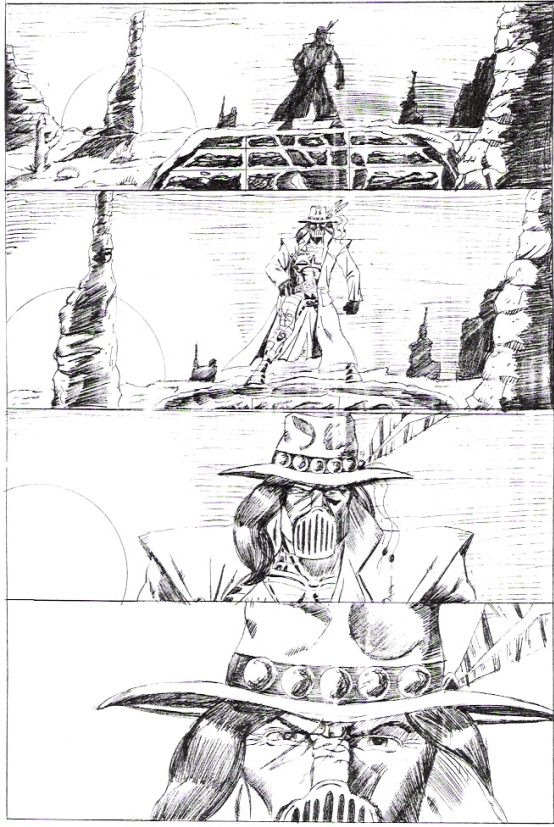Thanks, James. I really liked Luke's Romita/Kane style. LOL! I wish I felt that was a new character! My partner had a million ideas and we did a couple of pages for each it seems. Here is page one of Nu-Earth;