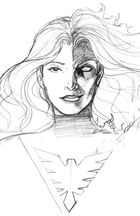 Been lurking for ages and thought, what the heck... here's a couple sketches I did today.  First one is my attempt at a Jean Grey/ Dark Phoenix shot.  - Peace