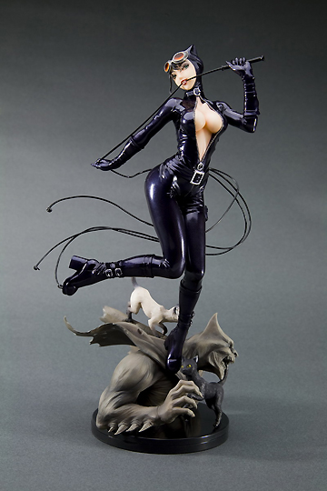 Catwoman's suit is zipped lower than I would prefer in the illustration, but I also think it's the case where something looks way worse in 3D. Also, based on the two pictures, Yamashita-san understands gravity where the sculptor of the statue does not.