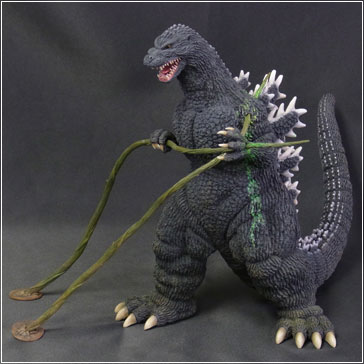 X-Plus of Japan has revealed their upcoming releases: First up, to coincide with their huge Biollante vinyl figure, they're releasing a somewhat revamped version of last years Godzilla 1989 vinyl figure, this time with a different stance and with "battle damage" from Biollante's tendril-spears (price around $120 USD):