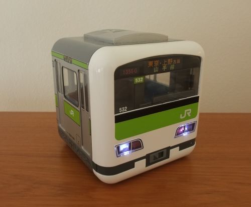 It's a coin bank in the shape of a truncated JR Yamanote Line train car. The Yamanote Line circles Tokyo in one big loop, so I ended up using it quite a bit during my stay there. This also has an electronic sound chip that plays the same station melodies you hear when the real train is about to depart. To see it in action, check this [LINK]. Never thought I would pick one up myself, but on the last day of my trip, I started getting a little natsukashi, or feeling nostalgic about all the traveling around Tokyo that I did, so ended up getting one at the nearby Tokyu Hands DiY store before heading for the airport.