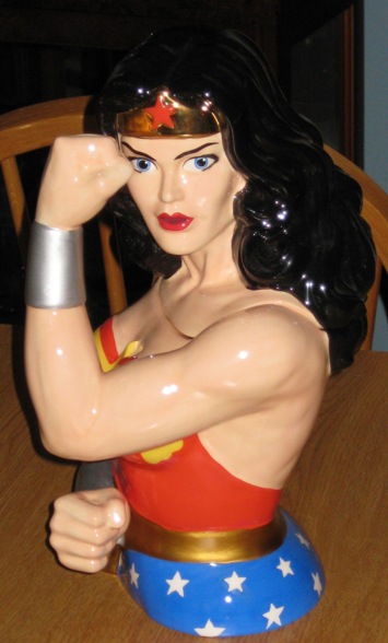 This spectacular Wonder Woman cookie jar is an early birthday present from my wife!