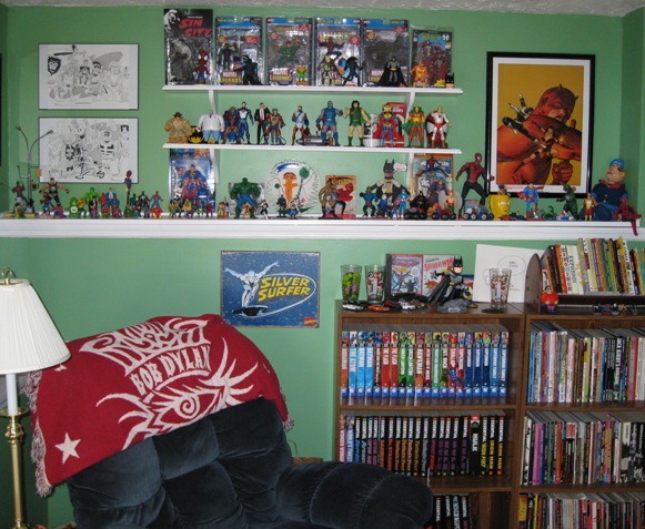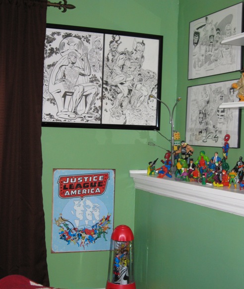 Last tin sign....The Justice League!  This is the back corner behind my comic readin' chair: