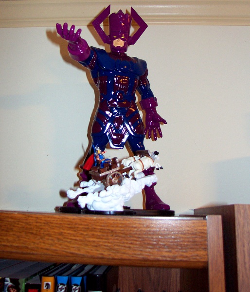 I put mine where it looks like he is about to fly up and attack my HeroCLix Galactus. I am now tempted to get some of the other HeroClix large figures.