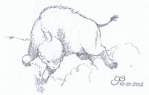 An earlier sketch colored with Prismacolor pencils.  Not the finest job in the world, but good enough to add to a sketchbook.
