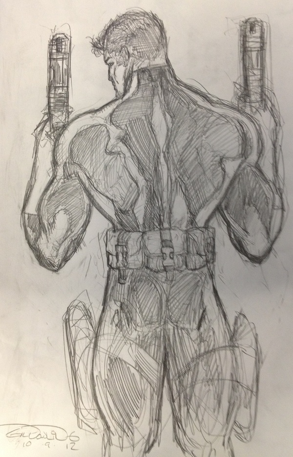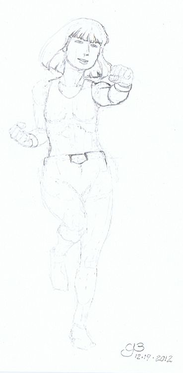 In closing for the day, another example of the current penciling style that I'm working on.  Basically, it's more like the layouts that Jack Kirby used to throw down for other artists (for instance, Werner Roth/Alex Toth in the early issues of X-Men in the mid-1960s).  I plan to ink directly over these during the holiday weekend to complete a series of model sheets to be used next year.