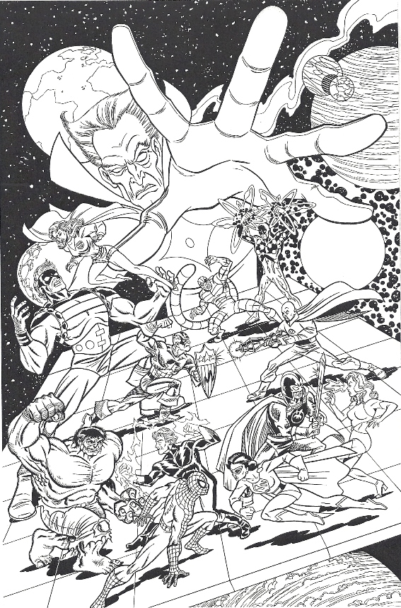And, while we're here, two pieces that have absolutely nothing to do with Baltimore, although this first one was completed just before and received just after: Defenders vs. early 80s Luthor and Brainiac by Paul Ryan: