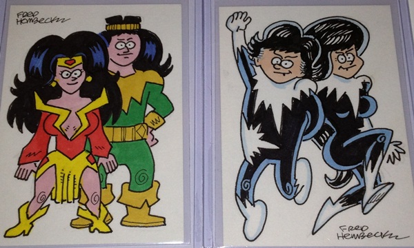 That Daredevil cover...insanely awesome. I saw the Frenz pages were up for sale, but I've had to commit to buying only from books I've actually read, so I passed. They are still really good, though, and tempting. Just arrived from Fred, always a treat. I asked him to add blacks to the twins' hair after winning the auction. I didn't get the other two I was bidding on, and the Puck/Sasquatch card went for almost $70. We both thought that was crazy, but good for him!