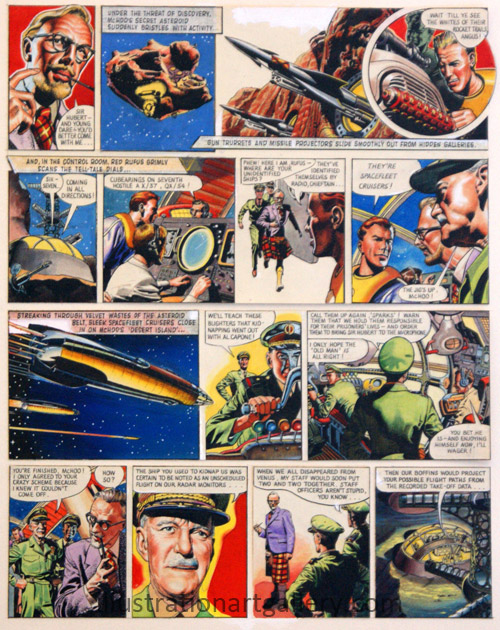 Merry Xmas to me! Another butcher job, with two pages from EAGLE cut up and pasted together to make one page for a DAN DARE Annual. But the artwork is still gorgeous, and the cutting and pasting reduces the price!