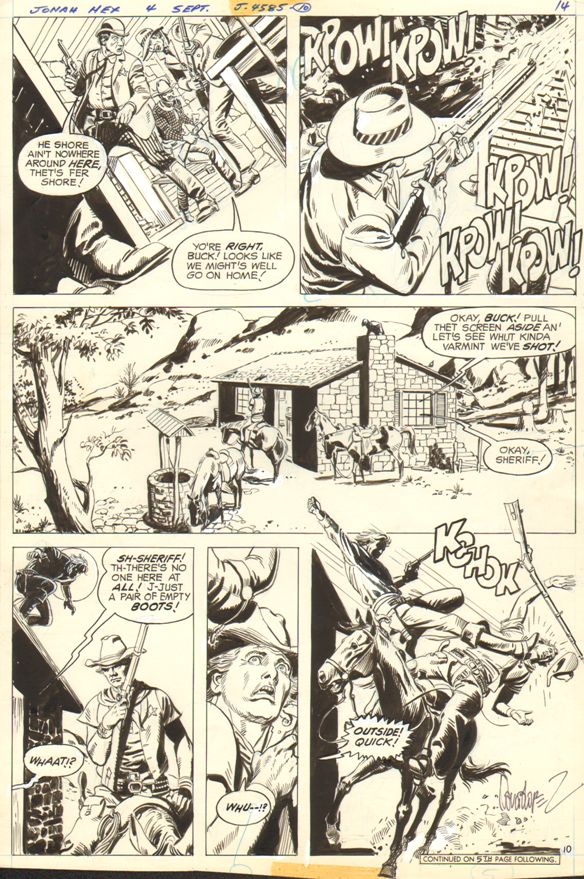 It is always enjoyable to find pages from a favorite artist, even moreso when I stumble across a page of original art from an issue that I have already been fortunate enough to get pages. Jonah Hex #4, page 10 does just that. Jose Luis Garcia-Lopez is a great storyteller and his ability to depict action awakens the child in me every time.