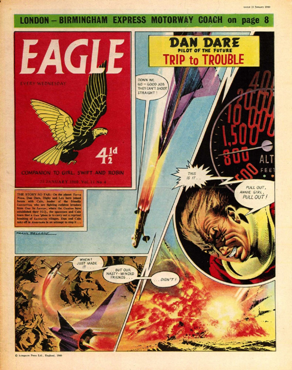 This is another page from "Project Nimbus", a story from which I now own more pages than I would ever have dreamed possible. Like one of the pages I recently purchased, this is a combination of Frank Bellamy in some panels, and Don Harley and Bruce Cornwell in others. Have I trained you all well enough yet that you can spot who's who? Also, so far as I know, not for sale:
