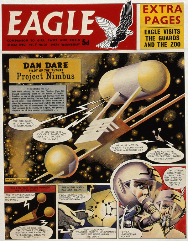 Just for the heck of it, I thought I'd post a handful of Grail pages -- pages I would love to add to my DAN DARE collection, but, alas, am not likely to any time soon.This one is from the second part of the "Terra Nova" storyline, which introduced me to Dan and Co. back in 1959. Frank Bellamy art. Sharp eyes will notice this page had a small influence on a scene in my recent COLD WAR series. So far as I know, it is not for sale, but. . . YUMMY!