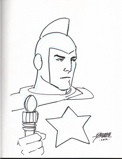And the final Perez of the show was the Power Girl/Huntress piece for their new DC 52 look that was used for the Pittsburgh Comic con t-shirt. I won it during the auction fundraiser for Make a Wish, on saturday night. The comic page is larger then 11x17 so i had to move it around on my scanner to show as much of the figures.