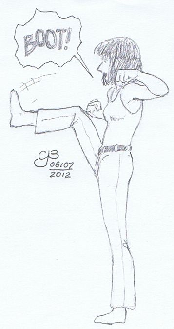 Second is a workbreak sketch where I decided to see how fast I could put together a figure in an action pose (putting the boot-stomp into someone's face).