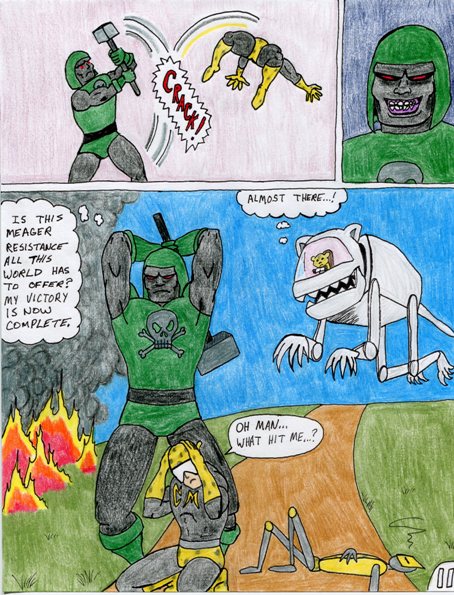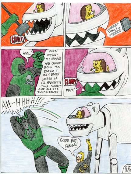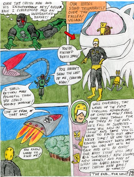 The climax to this story is what makes this project/experiment so cool...there's no way I would've come up with the surprise plot twist here where Fang runs off, gets a giant cheetah robot and helps save Cheetah Man!