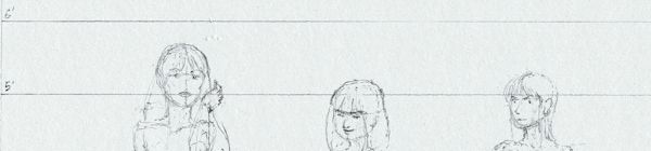 Featured in this clip of what is a larger model sheet (17" × 11" Bristol board) are three of the female leads.  I'm trying to go for something more than the static pose in an effort to express the personalities of each character.  Each model sheet will have up to 5 characters on the lineup with extra space being taken up by head shots and other relevant visuals.