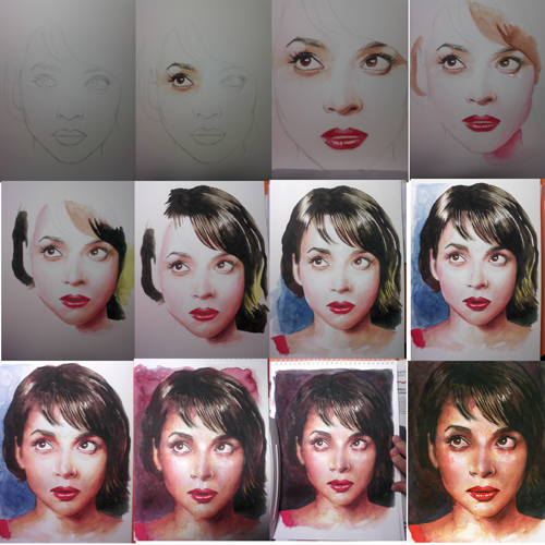 I've painted this watercolor of Norah Jones, I've tried to do it the best way that I can, It's not a bad portrait but I don't like it, it's very overelaborate and something is wrong for me (maybe the nose)...