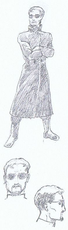This here is one of the antagonist for my set of characters called "Team Helix".  I call him the Mindbender, and visualize him as one of those spooky Trenchcoat Brigade types.  Hence the costume design you see here.