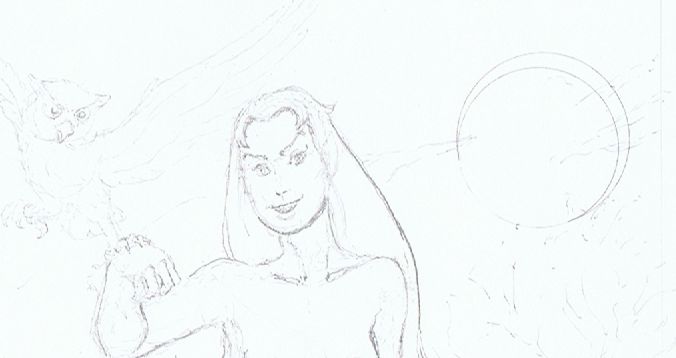 I plan on making two inked drawings using the LightPad overlay technique.  One will retain the original NSFW details, while the other will have the character in her costume.  As you can see, I'm in a sort of Halloweeny mood.
