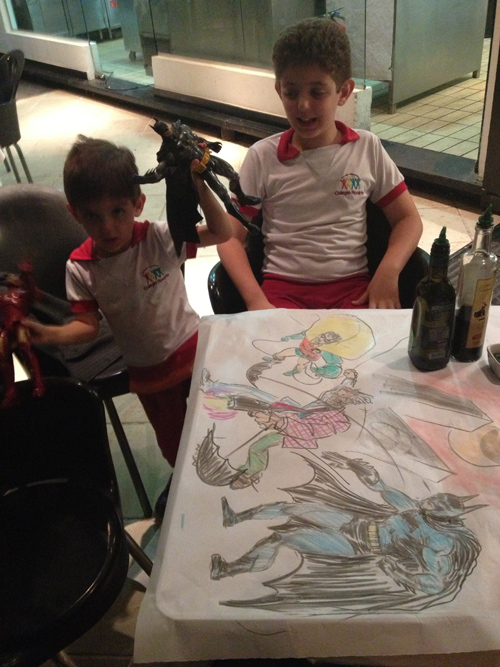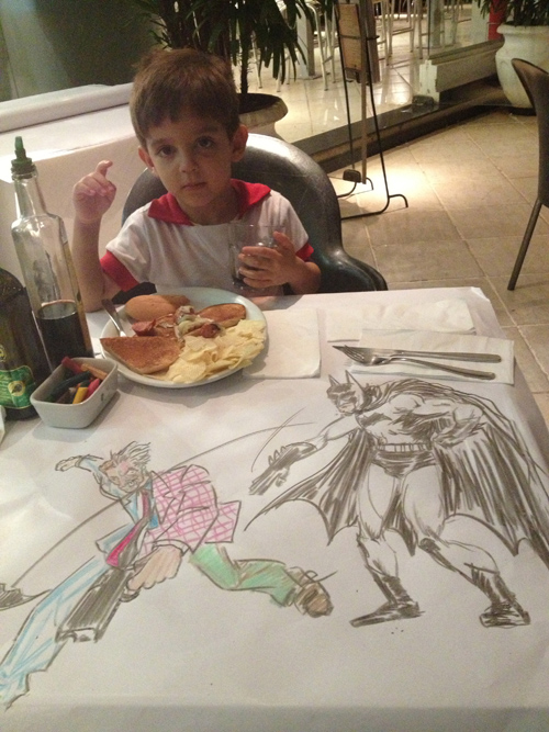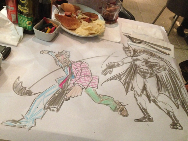Something I've done from time to time, at restaurants where they provide you with a sheet of paper and a cup full of crayons.  Time well spent while waiting for your entreé...