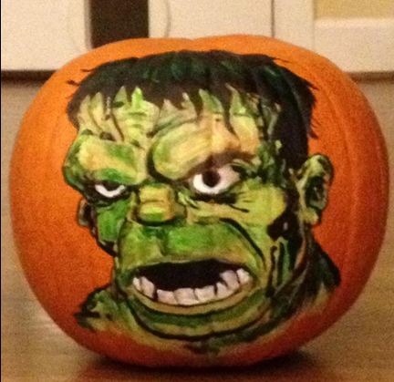 Last year, I posted the Thing pumpkin I did for Halloween (in JB's style -- or rather, my attempt at JB's Thing).  This year, I went for a Kirby Hulk (or, again, my ATTEMPT at a Kirby Hulk!)
