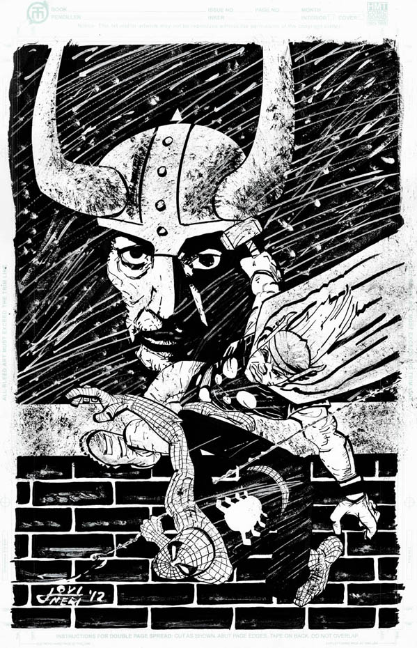 This rainy weekend left me with no golf to play, so I was able to draw some more. This has the characters of Spidey Super Stories 27, which is also dated October 1977. No originality here, just me miming FM's style.  As a sort of tribute to him, I did try to make Loki resemble him.