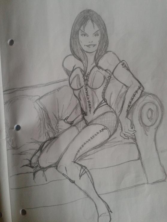 Sebastian, for the longest time I had trouble drawing women and getting the form and shape right. Came from drawing males for so many years, but the best way is practice, practice, practice. Look through clothes catalogues and fashion magazines to become more comfortable with the female form. I still still tend to draw women too stocky, especially on the hips and shoulders. Here's another one: