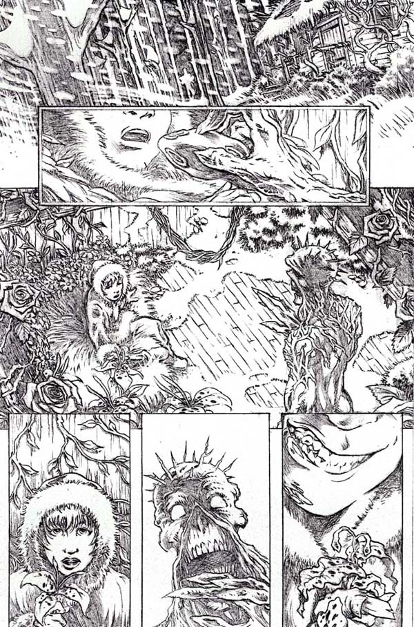 Thanks for the critique Joe. Much appreciated. There is a reason I shoved Sue in the back. Drawing women is my kryptonite, so to speak! Another problem is have is that, due to the scale of the other characters, Sue had to be drawn much smaller to add depth to the overall drawing. In so doing, I was limited to the amount of details I could add to make her look more feminine. I used XS Pitt Pens to add some of the features in her face but she looks very masculine still. You'd think a perv like me would know how to draw females but I guess not!! :-)