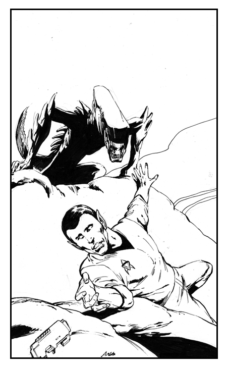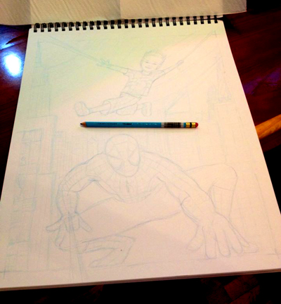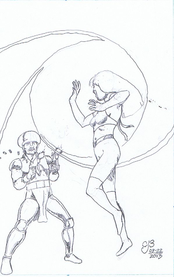 Some original characters of mine to showcase a little more complet sketch compositions that I have in mind.  I have this idea of making layouts equal to the size that print runs on comics are produced in (approximately 6" by 9-7/16" image area).  Lots more room to play around with the layouts and panel designs.