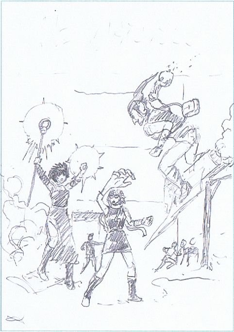 This may be the next little project that I'll be doing: a comicbook cover in the old fashion of the new Ms. Marvel fighting the Green Goblin, with a guest-star who may not be on her side.