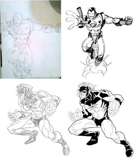 I started doing these challenge rounds with a friend (who is a professional illustrator himself). Each one chooses a Marvel/DC character, the other has to sketch it and then the one who chose it gets it back for inking (we both do it digitally). We've done 3 rounds already and It's been fun. Here I have Iron Man sketched by myself and finished by him and Captain Marvel the other way around.