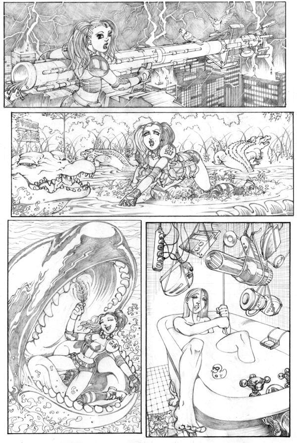 The most fascinating thing about this project, is the wildly varied ways artists interpreted the script. I particularly like the way you solved the opening cell tower panel. With all that detail, it'd be interesting to see how your page would look fully inked. Sadly my inking skills are pretty much non-existent.
