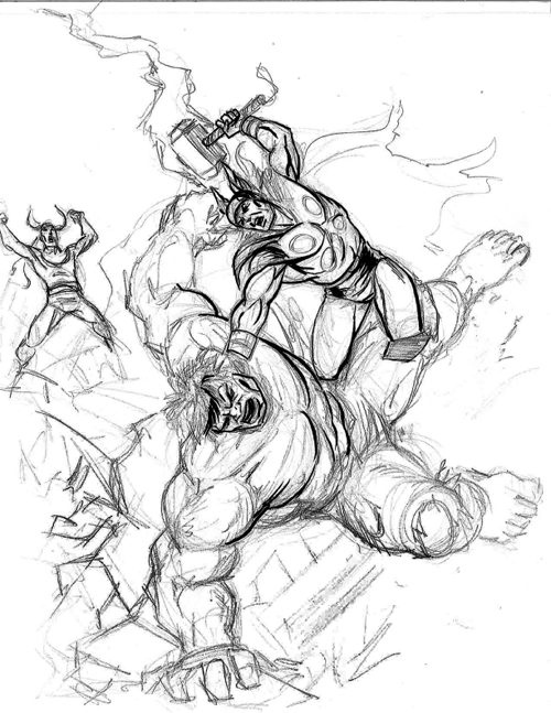 I like this composition and plan on revisiting it at a later time with finished pencils. My buddy Teon starting inking the sketch just for kicks.