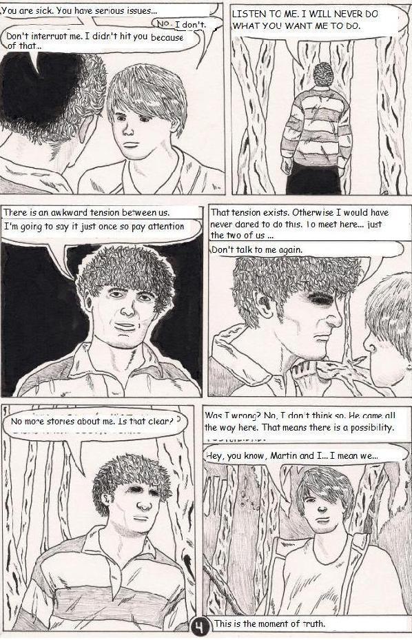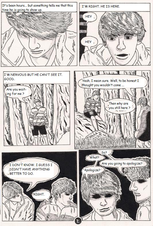 Thank you Dave! I think all the action is at the end of the story and maybe a bit on the first page. The rest is just talking heads. And I really appreciate the hair compliment, this was probably the first time I had to draw so much hair and try to make it look coherent according to the character. If I can be totally honest, the white background was just a necessity (I didn't have time to add any real background due to the deadline!), and the same goes with the black background, I just thought that having only white backgrounds could be kind of boring so I added a little black. Lack of time has been quite problematic. Anyway, here's another page: Thank