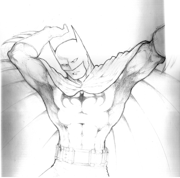I like how this one turned out, not finished but getting a feel for it. It's on a large page so I had to do a couple scans to get most of the image. Waist to body ratio is too thin, but overall feeling good with the feel of the pencil! The basic idea of the sketch is that he's taking aim with a battarang!