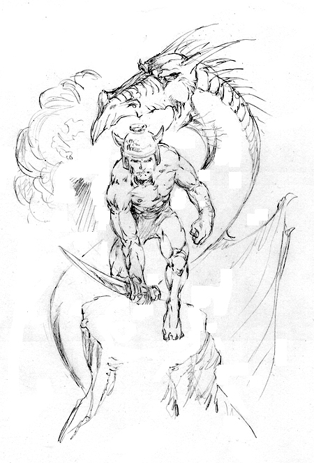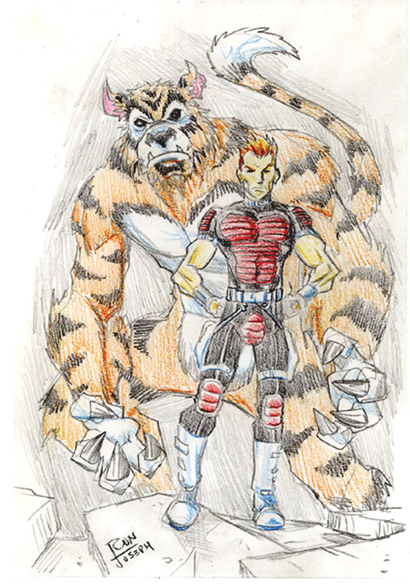 I'm not very proficient with brushwork myself. That's why I prefer nib pens and felt-tip markers for my inking. The most that I've done with brushes is fill in black areas on a drawing and put down a few thicker lines or effects where it would look "right". The ball-points were good for just about everything, with the possible exception of filling in solid areas. My stuff with them was fairly well laid-out, but it was like any other 6- to 10-year old boy's. Little more than cartoon figures. I was drawing comics with dinosaurs as the main characters, and almost no humans. After I was introduced to Marvel comics and JB's X-Men, I began to seriously pursue a more realistic style of drawing. Within a few years, I had even put together short comics of my own, though these also didn't survive to be salvaged. It's a shame, because some of the characters and stories that I created in them are still with me today, in a slightly modified form.