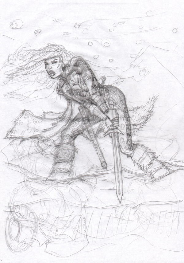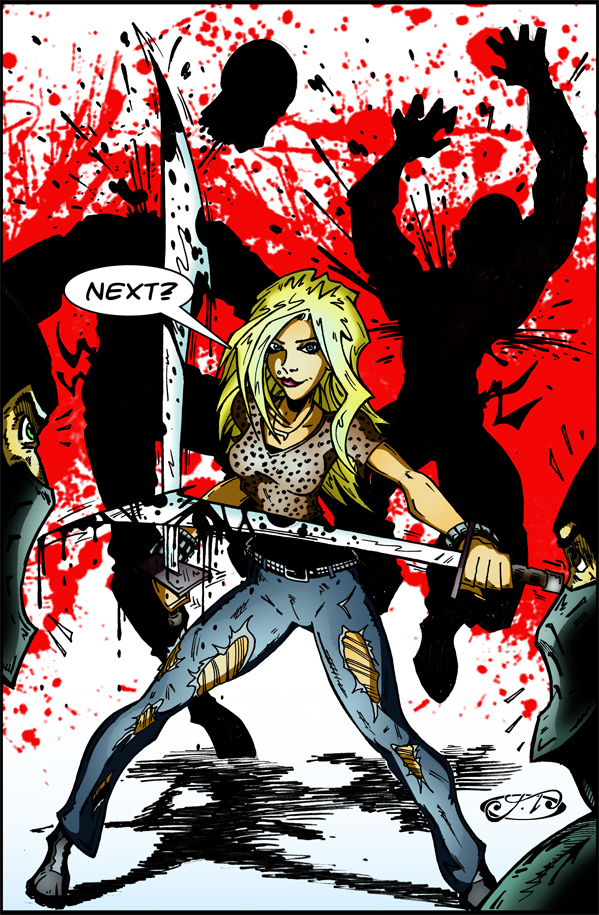 Hey Ben, DIG that Catwoman. Great picture, and I love her expression - it's bang on. Sebastien, that's some big work right there - neat choice of layout, too, with the panorama landscape. Flavio, great choice with DI Gene Hunt and very nicely executed, as well. Love the revolver in the first one. Joe, striking use of heavy blacks there, mate. You just know she's got a Derringer in her garter belt... Red Sonja again - gonna ink this one this afternoon while the footy's on (the Aussie rules, not the soccer). Concentrating on texture and weight for this one, hope it comes out the way I picture it...