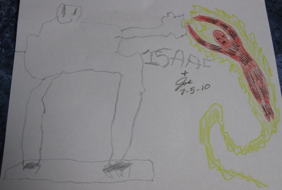 My five year old nephew and I recently collaborated on this Silver Surfer and Human Torch piece: