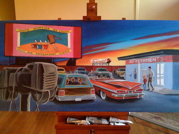 Been working inbetween other activities today on this section of the painting. Still needs refining, but I think it's getting there. Hoping to basically finish this part up tonight so I can concentrate on refining the cars and finishing the rest tomorrow.