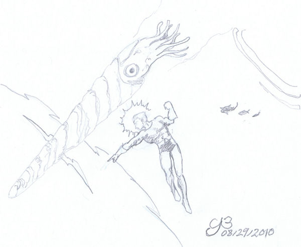 * A note on Black Manta: I drew this Aquaman villain straight from memory as I recalled him from the "Superfriends" cartoon from my childhood.